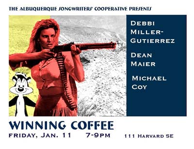 Debbi “Puppydog” Miller Gutierrez will be performing some of her original songs, some from her album, Anywhere But Where I Am, and others slated to be recorded soon. Lou “Salty Dog” Blackwell will join in on two tunes with his fiddle, as will Gerard Bezzeg (from popular local show “Hello In There”) on harmonica.